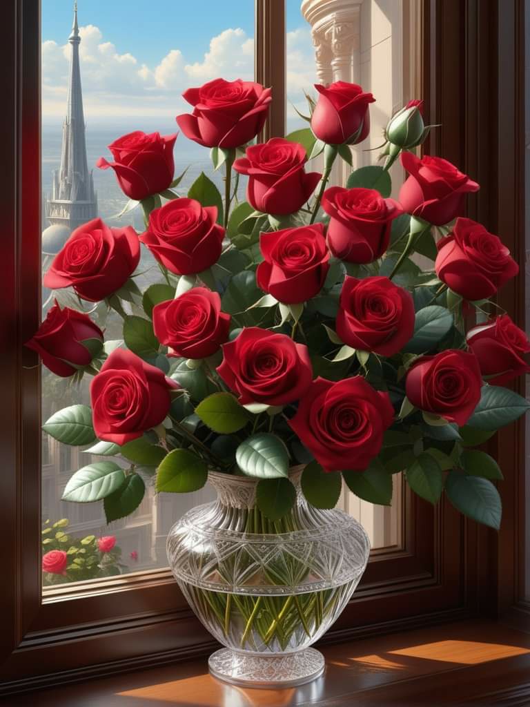 Beautiful Beautiful just what I need to see coming in from the cold as in weather. Roses and Diamonds ! Thanks as usual for sharing such beautiful Floral arrangements and other pictures. Blessings you and your family. LikeLiked by 1 person Reply
