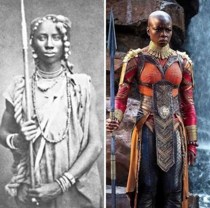 The Dahomey Amazons were a all-front female military regiment of the Kingdom of Dahomey,Benin Republic 🇧🇯 West Africa. They were know for their fèarless attributes, amazing sword and spear skills. Wakanda got their inspiration from these fearless women. Fearlessly beautiful.