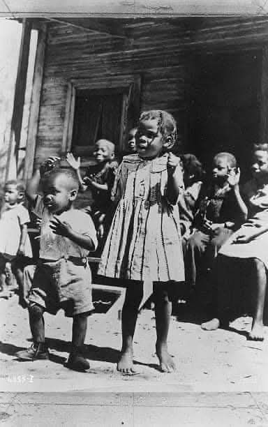Taken during the Great Depression, this portrait also speaks to the resilience and strength of Black families in the face of adversity. While economic hardships were widespread, and life on plantations remained difficult, the photograph captures the enduring human capacity for joy, connection, and self-expression. It serves as a reminder of the rich cultural heritage passed down through generations, and how, even in times of struggle, children continued to find ways to celebrate life, bond with one another, and hold onto the traditions that defined their communities.