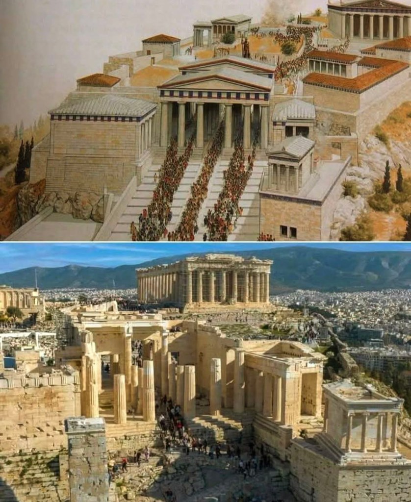 The Acropolis features stunning marble temples, grand theaters, and intricate sculptures, all of which highlight the artistic and architectural mastery of the time. The precision and beauty of these structures, along with the elaborate carvings and reliefs, reflect the values and ideals of Greek society—emphasizing harmony, proportion, and the celebration of both human and divine forms.