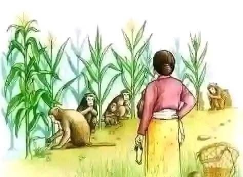 When baboons and monkeys heard that the farmer who used to chase them from the maize field had died, they celebrated with joy.