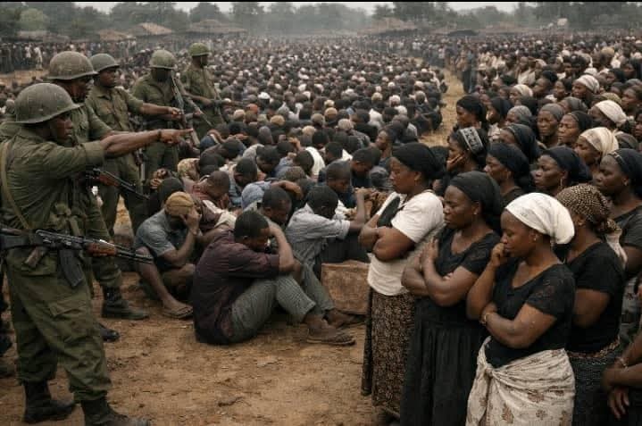 Federal soldiers ordered residents to assemble, assuring them it was for a “peace meeting.” Men and teenage boys were separated from women and children, lined up in groups, and sh0t at close range. The kpaing were systematic and br√tal. Women were f0rced to watch, many widowed in minutes.