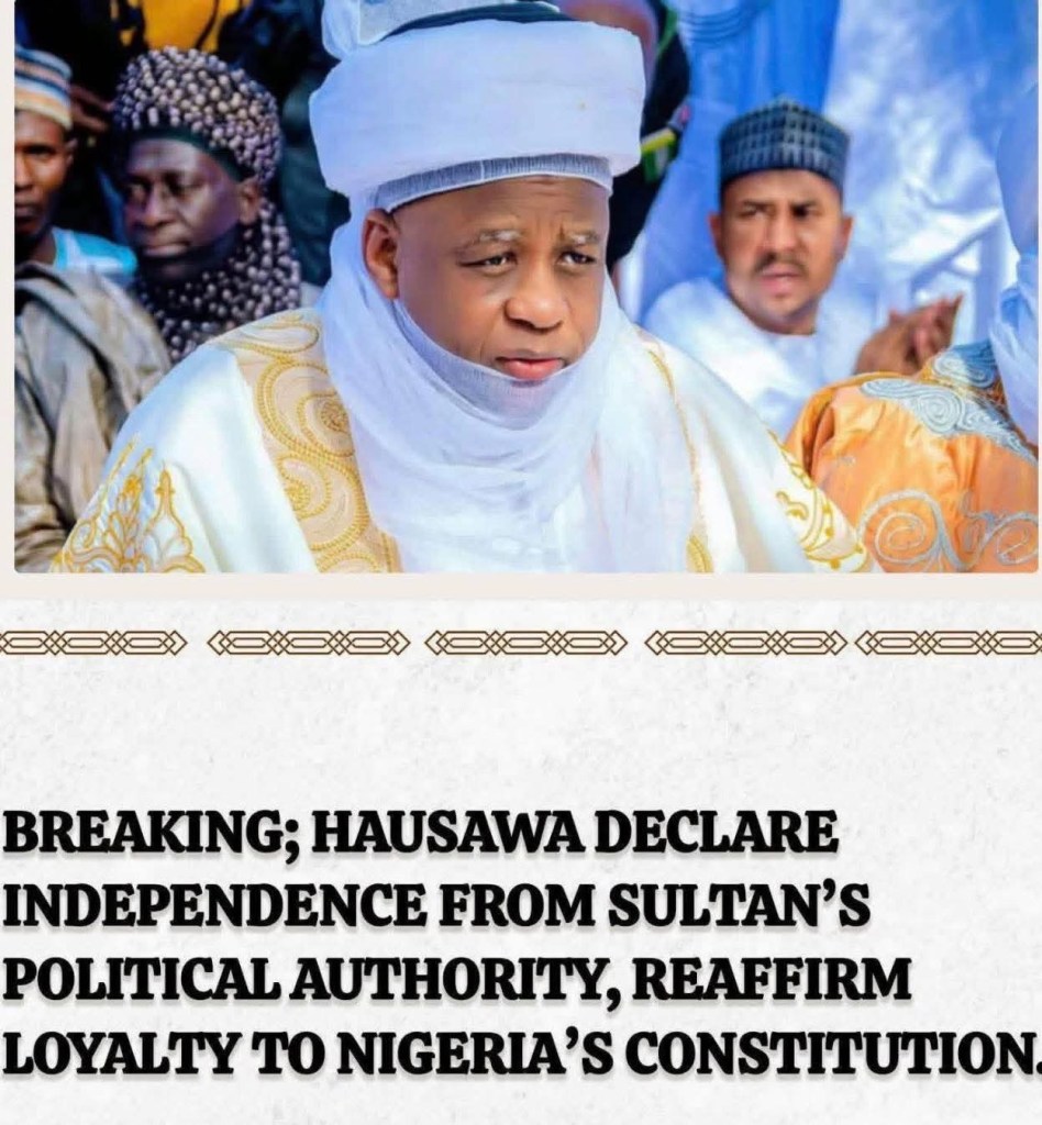 BREAKING: A fresh wave of constitutional debate has emerged in northern Nigeria as the Hausawa Tsantsa Movement publicly distanced the Hausa people from any religious or ethnic political directives attributed to the Sultan of Sokoto, insisting that their allegiance rests solely with the Constitution of the Federal Republic of Nigeria